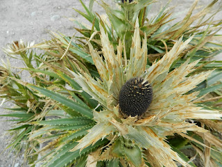 Then we started the hike, which pretty tough - the trail was easy, but the altitude (over 15,000 ft) made just breathing quite tricky. Seriously, I've never found walking so difficult. Mariah and I ended up stopping almost every minute. Also, because the oxygen level is so low, there's almost no vegetation besides some crazy-cool cactus-y flower things, and the whole area kind of feels like a different planet. Super weird and really beautiful.